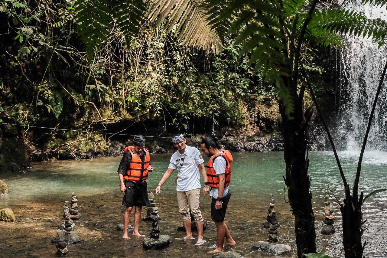 Menparekraf Sandiaga saat melakukan visitasi 75 desa terbaik Anugerah Desa Wisata Indonesia (ADWI) 2023, di Kecamatan Citer, Subang, Jawa Barat, Jumat (7/4/2023) mengatakan, Desa Cibeusi memiliki destinasi unggulan yang menjadi daya tarik yaitu sebuah objek wisata bernama Curug Ciangin dan situs batu tapak.